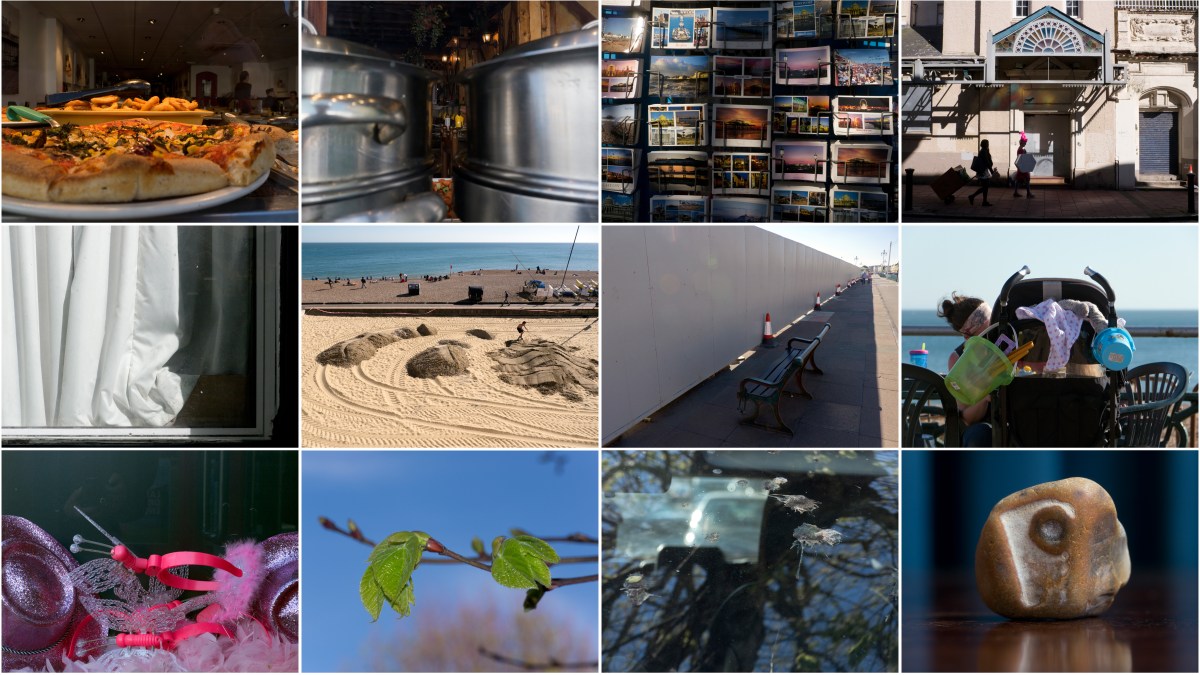 Sitting at the café, I hear an unmistakeable clunk and rattle, and know at once that someone is spreading out their treasure on one of the plastic tables nearby. Turning, I see two parents and a child. None of them are saying much. The child, a girl of about nine wearing a look of defiant sternness, gathers all the stones together in her arms and gets up from the table. Her father follows her and reaches out for the stones, but the girl hunches her shoulders and turns away from him. At once I know she has been told to put them back, and indeed you can see she is going to do so, but it’s going to be her that does it; the humiliation of having this responsibility taken away from her would be too much. She walks slowly to the ornamental railings separating the beach from the promenade and drops them one by one over the edge onto the shore. The girl does this with great deliberation while, at a watchful distance the father observes, his face set in a scowl.