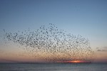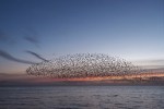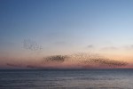 I am being really patient about this as the starlings are now flying, full throttle, making some fantastic shapes, many of which I’m not getting good shots of because of this group. But you know what? I’m happy for them to be exactly where they are, so close to me, and the sea. Because I spend a lot of my time on the beach taking photos, I’ve become an expert at judging where to stand to avoid the occasional larger wave that travels that bit further up the beach than most. I’m positioned just beyond this safe limit, but because they are in front of me, they aren’t. I keep taking pictures, and so do they.
