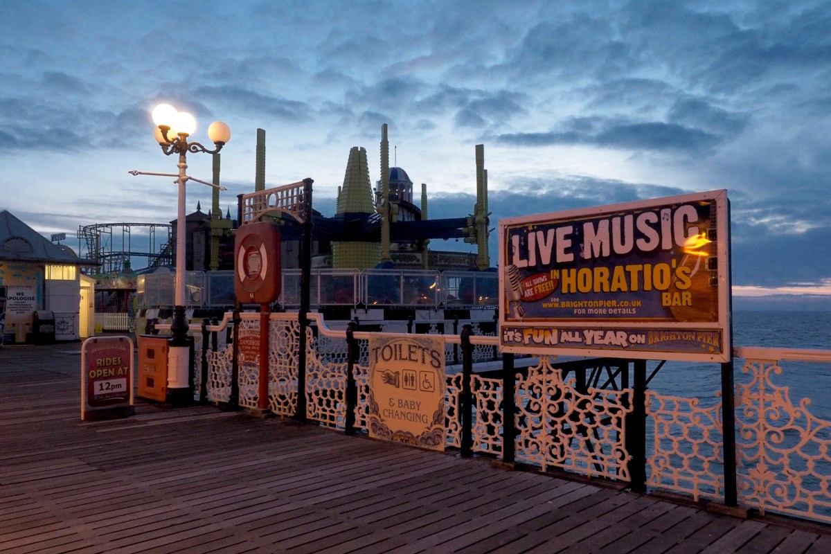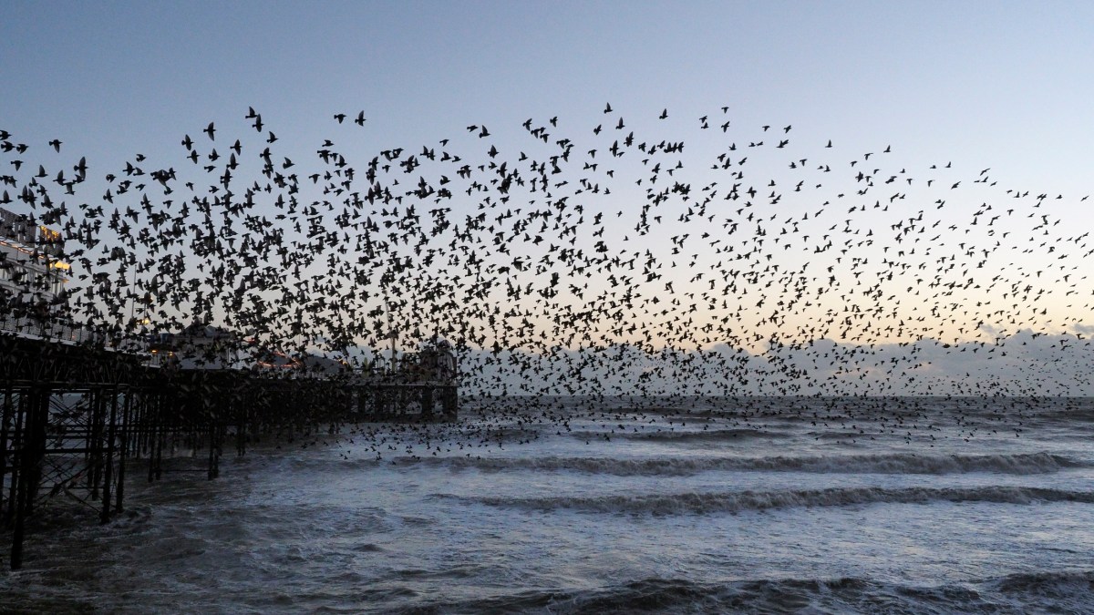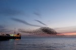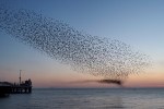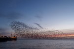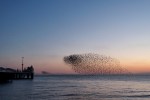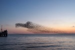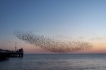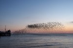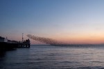 I’m back on the beach next to the Pier photographing starlings again. The wind is stronger than yesterday and on days like this the starlings fly much closer to the water. I want to be as low as possible so I can still see them against the sky, and I’m pretty close to the waves as I don’t want any people in front of me, just the birds. The murmuration has started and I’ve already been photographing for about ten minutes when two men and a woman blunder into shot, right in front of me. They start to take pictures of each other clowning about. It’s difficult not to see this intrusion as provocative, the beach is almost empty today and they could have stood anywhere else to get the same pictures.
