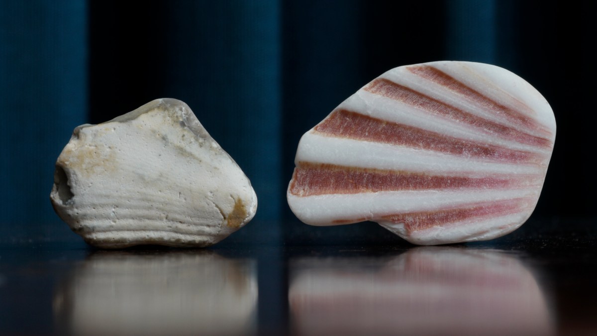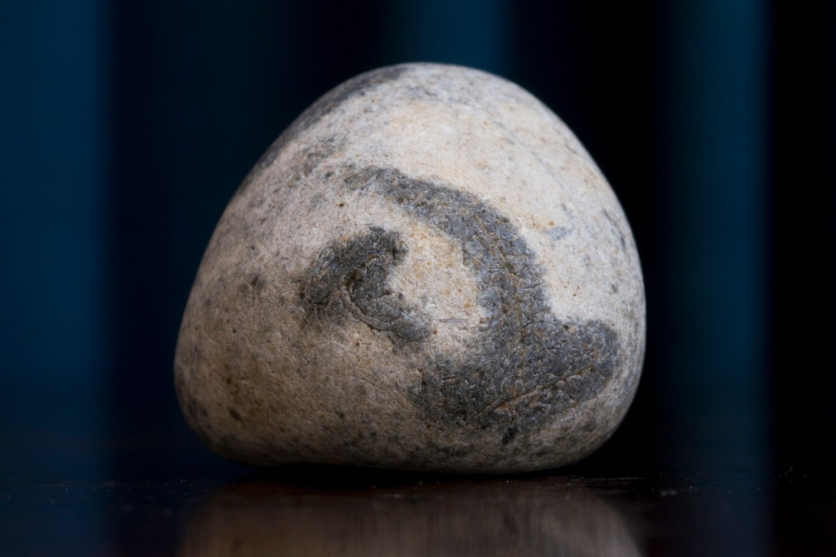 It’s quite small, a little larger than a nob of chewing gum. Probably a fossil washed along the coast from Eastbourne or Beachy Head and therefore, given the local geology, likely to date from the Cretaceous Period. It seems to have a kind of three-point symmetry, yet at the same time, the object as a whole is more organic than geometric, so this symmetry is somewhat obscure. Holding the stone and looking at it now, it seems to me that the best way to describe it is thus: