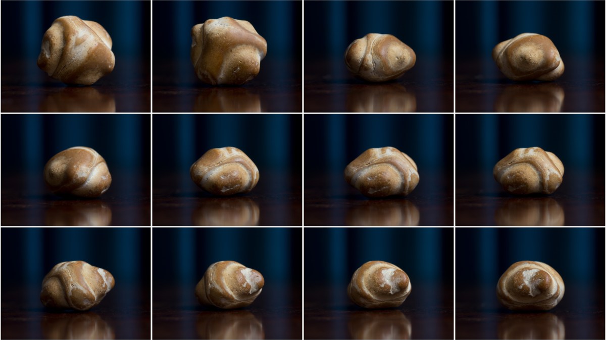 I’ve already mentioned in older posts how some stones I find lend themselves to being photographed, having one good angle that seems to exemplify its personality, while others need to be turned in your hand to fully appreciate the peculiarity of the object. The stone pictured above is another example of this latter category. One image doesn’t do it justice so I’ve decided to present here a page showing twelve different angles of the same stone, in the hope that it might convey more of its character. Even then, I’m not sure how well I’ve succeeded.